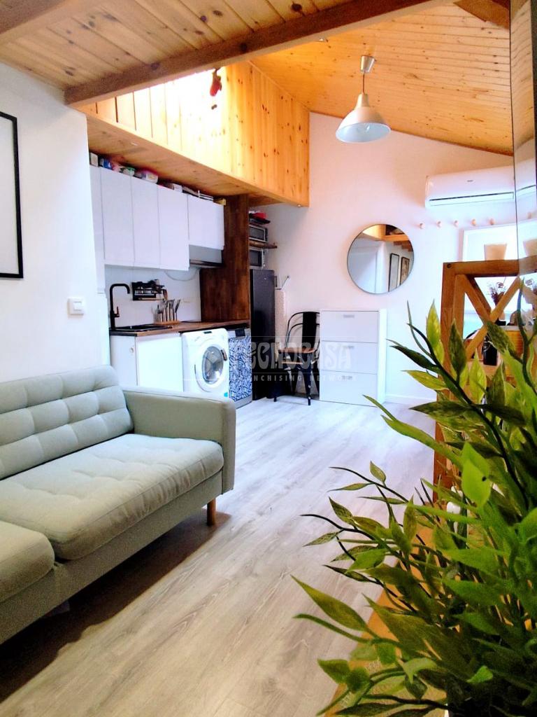 Cuenta con un dormitorio, salón con cocina americana, baño completo y un práctico altillo con zona de dormitorio adicional y espacio de trastero, ideal para optimizar el almacenamiento.